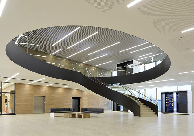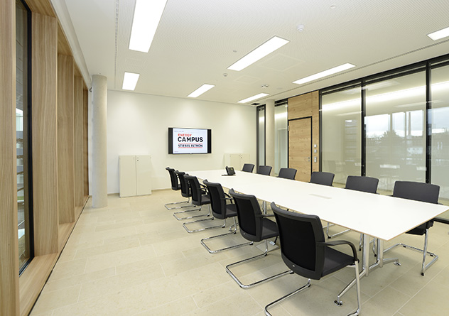Energy Campus je predovšetkým priestor pre stretnutia a komunikáciu. Je to zjavné už veľkorysými sklenenými plochami na fasáde. Uskutočňuje sa v ňom otvorená výmena poznatkov a know-how.