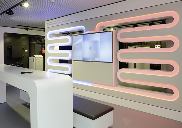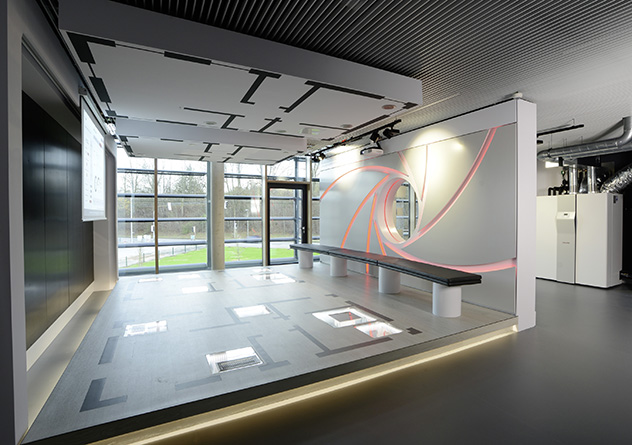 STIEBEL ELTRON sprostredkuje svojim montážnym a veľkoobchodným partnerom, ako aj projektantom a architektom plne funkčné zariadenia pre ohrev vody a elektrické vykurovanie ako aj zariadenia na báze obnoviteľných zdrojov energie v praxi. V školiacich miestnostiach je možné nasimulovať napr. rôzne funkcie zariadení pri extrémnych vonkajších teplotách a vzájomne ich porovnávať.